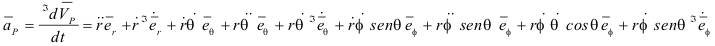 Reemplazando los vectores unitarios, que cambian con respecto al tiempo y agrupando: