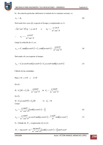 b).- Su solución particular (utilizamos el método de la conjetura sensata), es: