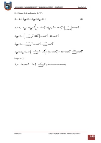 MEC%u00c1NICA PARA INGENIER%u00cdA Y SUS APLICACIONES %u2013DIN%u00c1MICA Cap%u00edtulo IIUNASAM Autor: V%u00cdCTOR MANUEL MENACHO L%u00d3PEZ 1803).C%u00e1lculo de la aceleraci%u00f3n de %u201cA%u201d:(2)Luego en (2):(Unidades de aceleraci%u00f3n)