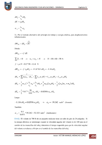 2).- Por el método alternativo del principio de trabajo y energía cinética, para desplazamientos