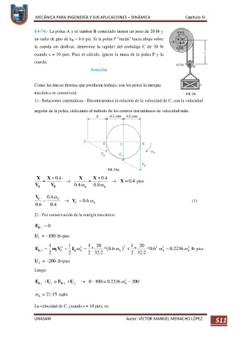 un radio de giro de k B = 0.6 pie. Si la polea P “rueda” hacia abajo sobre