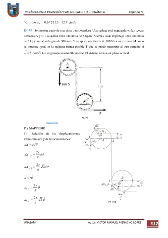 dentadas A y B. La cadena tiene una masa de 5 kg/m. Además, cada engranaje tiene una masa