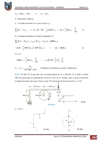 E4-26.- El disco de 12 kg tiene una velocidad angular de = 20 rad/s. Si se aplica el freno