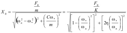 En donde, es la frecuencia o pulsación de la fuerza excitatriz o del desplazamiento, F0 o K b amplitud de la fuerza excitatriz o del desplazamiento respectivamente.