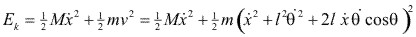 Tomando a x y como coordenadas generalizadas para el sistema, tenemos, para la partícula m, , Sea v la velocidad de la partícula. Entonces:
