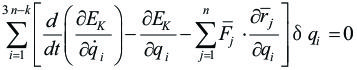 Notamos que en la deducción de la ecuación de Lagrange, la fuerza generalizada puede calcularse de acuerdo con: