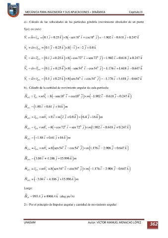 b).- Cálculo de la cantidad de movimiento angular de cada partícula: