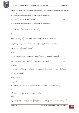 iii).- Cálculo de la aceleración de “B”, como parte de la barra AB:
