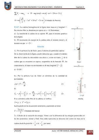 Si se considera caída libre de la cadena, se verifica: P3-67a