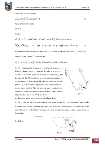 6).- Determinación de la fuerza para tener la velocidad de M constante.- En (4) hacer z ,