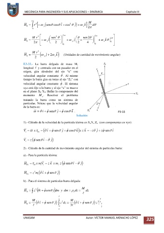 2).- Cálculo de la cantidad de movimiento angular del sistema de partículas barra: