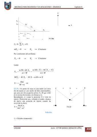 E3-39.- Un punto de masa m está unido con otros A a O a B