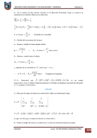 conservativo; si lo es, hallar la función potencial y el trabajo al desplazar una partícula del punto