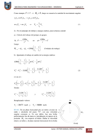 2).- Por el principio de trabajo y energía cinética, para la fuerza central: