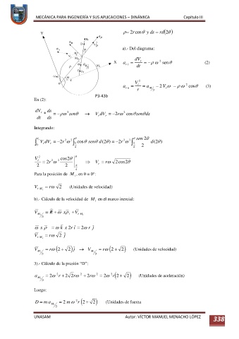 b).- Cálculo de la velocidad de M en el marco inercial: