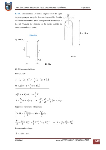 E3-45.- Una cadena de L = 2 m de longitud y w = 0.5 kg/m