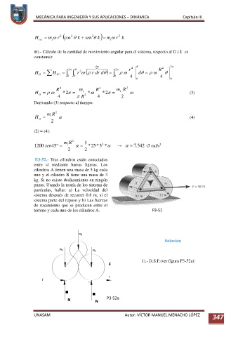 iii).- Cálculo de la cantidad de movimiento angular para el sistema, respecto al G ( k es