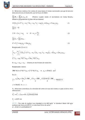 2).- Relaciones cinéticas (los centros de masa tienen el mismo movimiento, por que la barra de