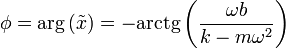 Para encontrar la amplitud y desfase de este movimiento oscilatorio, escribimos la ecuación la ecuación en forma fasorial, reemplazando las derivadas por multiplicaciones por j?. Nos queda la ecuación algebraica